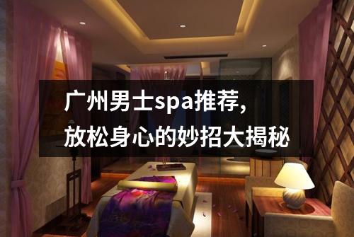 广州男士 Spa 推荐:享受放松身心的绝妙体验作为一名资深 lifestyle 小编,经常穿梭于广州的大街小巷,体验各种新潮的养生休闲方式。今天,我就来为大家揭秘广州男士 Spa 的绝妙体验,解决大家的问,让大家尽情享受放松身心的惬意时光。广州有哪些值得推荐的男士 Spa?广州的男士 Spa 可谓星罗棋布,各有特